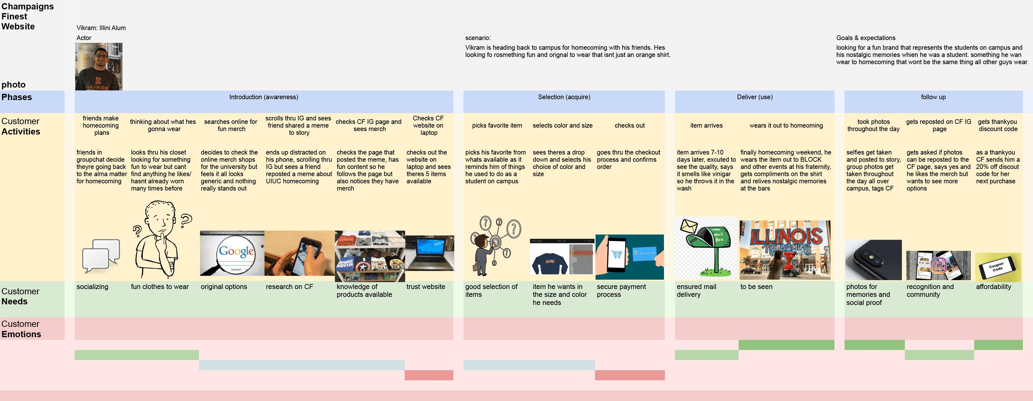 Detailed the path of college students exploring and purchasing merchandise online, highlighting pain points and opportunities for improvement
