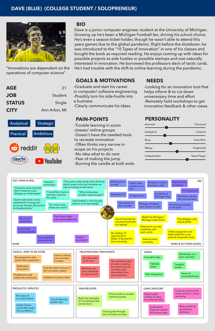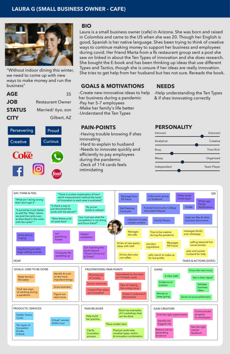 The company Doblin uses a card deck with their "10 types" of innovation ideation workshop. I noticed the cards were out of stock and took on the challenge to improve the overall experience of learning the discipline as well as improving the ways the tool can be used to service people.